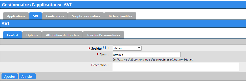 - Dans l’onglet Général, sélectionnez un locataire (« tenant ») et donnez un nom utile à votre menu AA (répartiteur automatique).