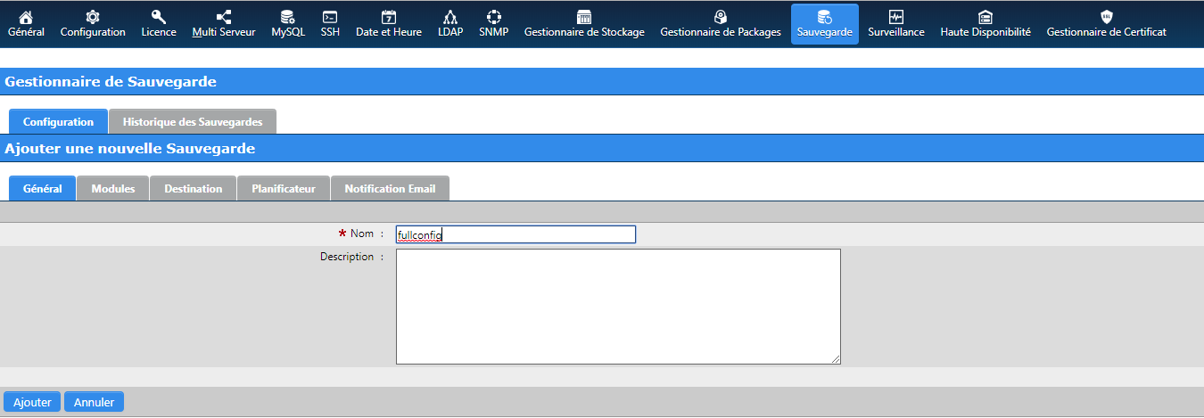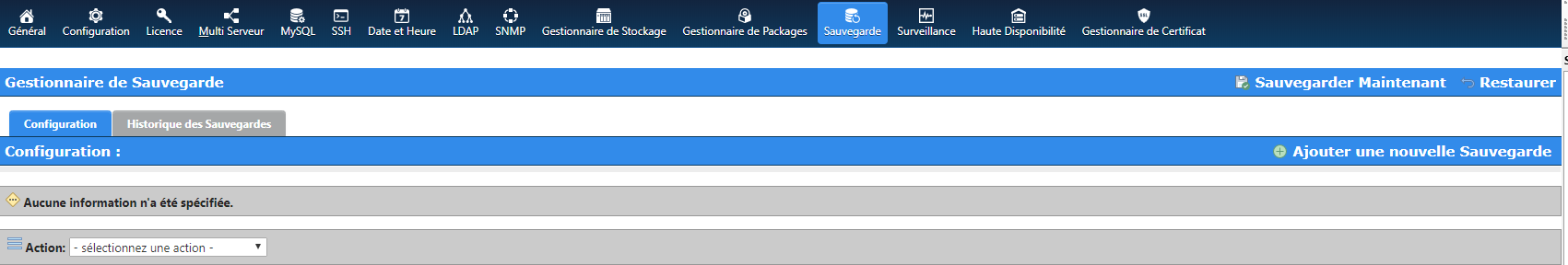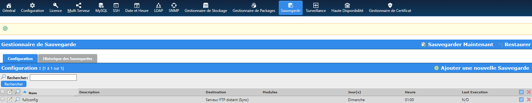 - Configuration de sauvegarde